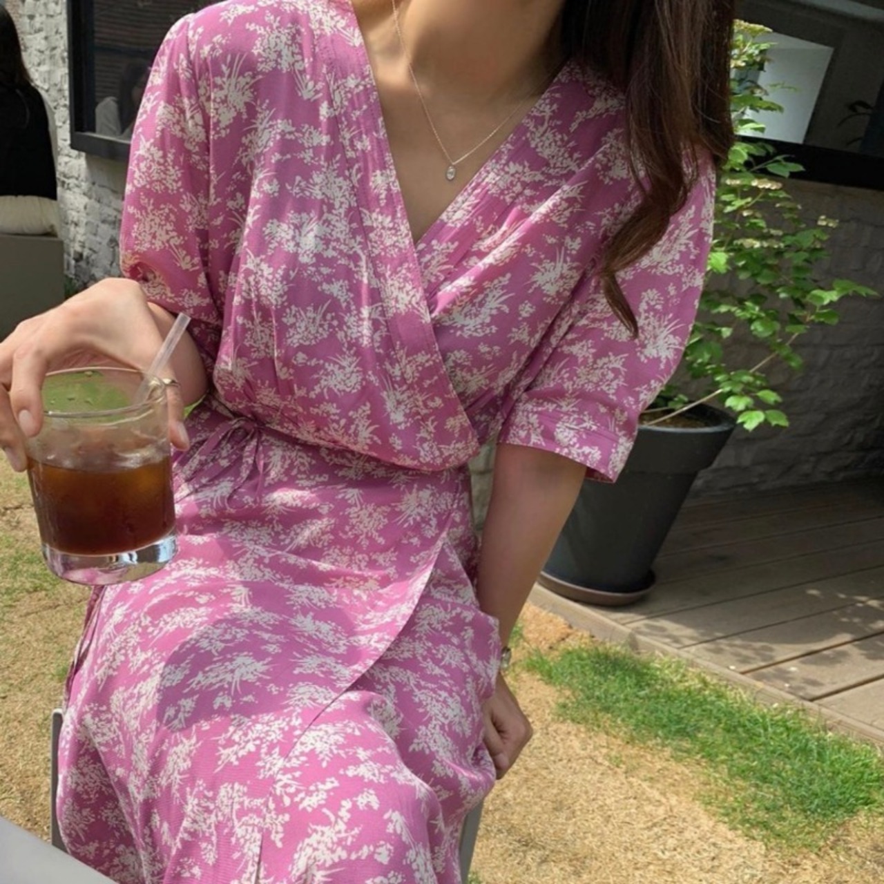 スタイルフローラル薄手Vネッククロスウェストバンドワンピースドレス ロングスカート 花柄 ICC_レディース0022122