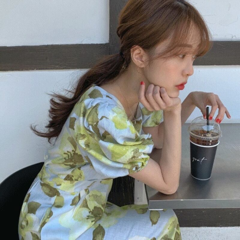 サマーフローラルスカート カラーロングドレス 大人ガーリー スウィート キュート カジュアル エレガント 夏物 花柄 スクウェア ICC_レディース0038292