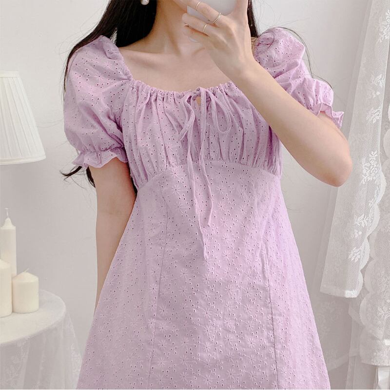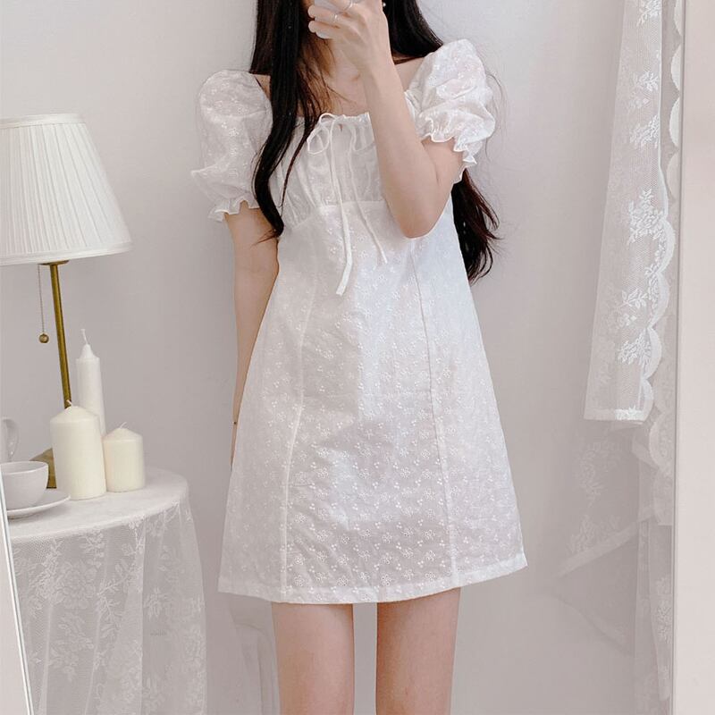 スタンダードスカート スタイル刺繍ハイウェストウェスト薄手ショートドレス レトロ フラワーデザイン 左左右右1315378