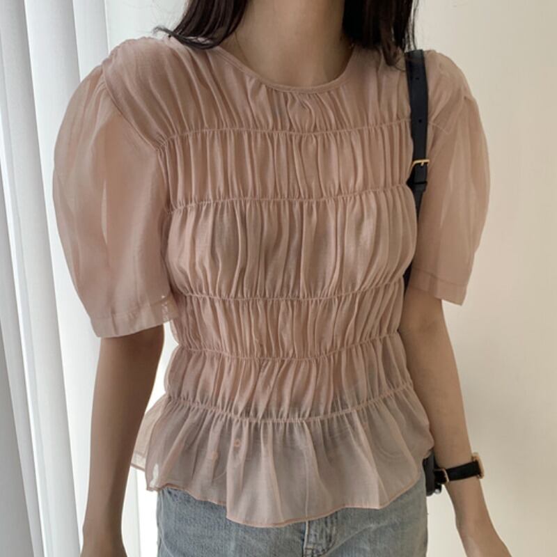 サマープリーツシャツ レオパード薄手 レッド 夏物 ICC_レディース4346270