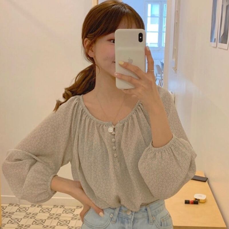 ラウンドネックフローラル長袖スリーブシャツ ロング 花柄 Oネック ICC_レディース2440958