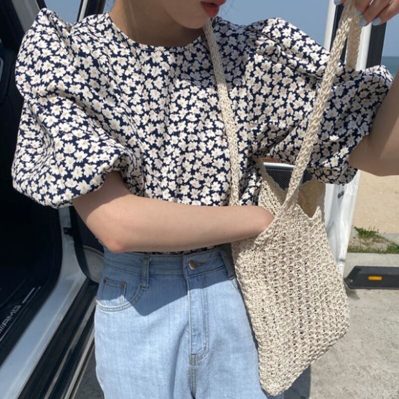 サマースタンダードシャツ フローラルルーズスリーブトップス レディース レトロ 夏物 花柄 ICC_レディース0003288