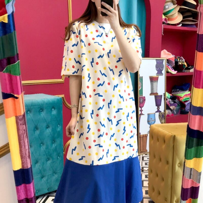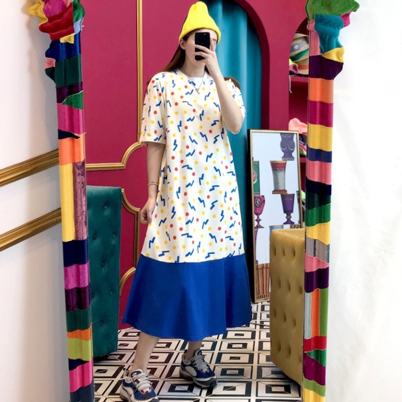 水玉プリントラウンドネックルーズカラードレス Oネック ICC女装3490067