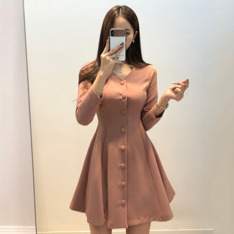 Vネックプリーツウェストスリム薄手ドレス スカート レディース エレガント ICC_レディース9173186