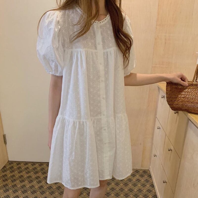 サマー刺繍ショートスカート 薄手ホワイトドレス 大人ガーリー スウィート キュート カジュアル 夏物 ICC_レディース4320382