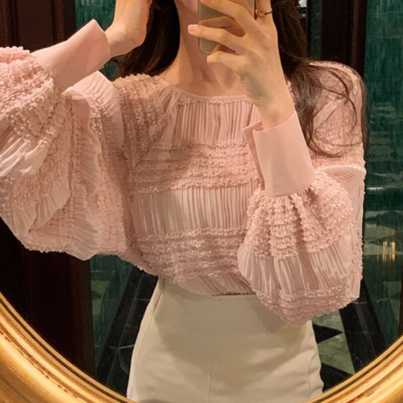 スプリングルーズスリーブシャツ レディース ランタンスリーブ 大人ガーリー スウィート キュート カジュアル 春物 ICC_レディース8805404