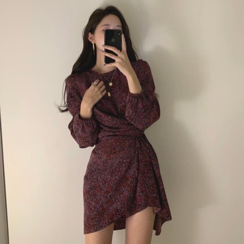 ラウンドネックレースウェスト長袖スリーブドレス レディース ロング エレガント Oネック レースアップ ICC_レディース1111072