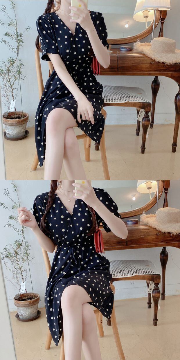 サマースタンダードブラックスカート 薄手ウェストロングフローラルドレス レトロ 夏物 花柄 フラワーデザイン 左左右右1930105