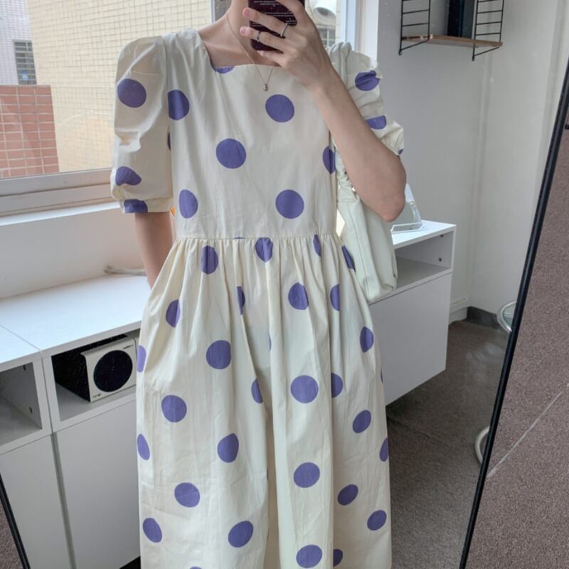 サマースリーブスカート カラールーズ水玉ドレス レディース 夏物 スクウェア ICC_レディース2194769