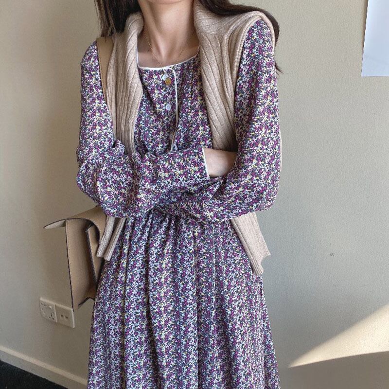 フローラルカラーハイウェストウェスト薄手ドレス 花柄 スクウェア ICC_レディース1771014