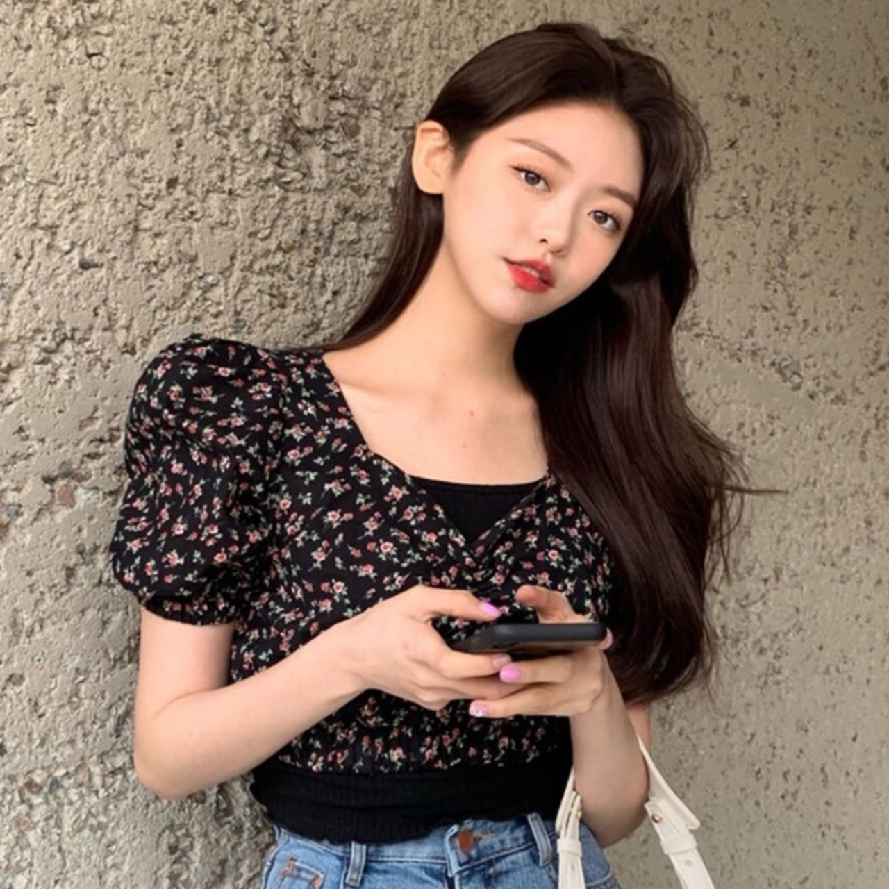 サマープリーツスリーブ半袖薄手フローラルシャツ トップス ショート ハーフスリーブ 夏物 花柄 ICC_レディース9551663