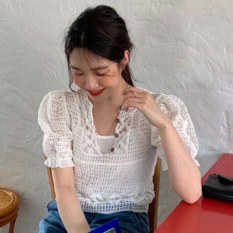 ホワイトシャツ サマー薄手セーター スリーブトップス 夏物 ICC_レディース8442346