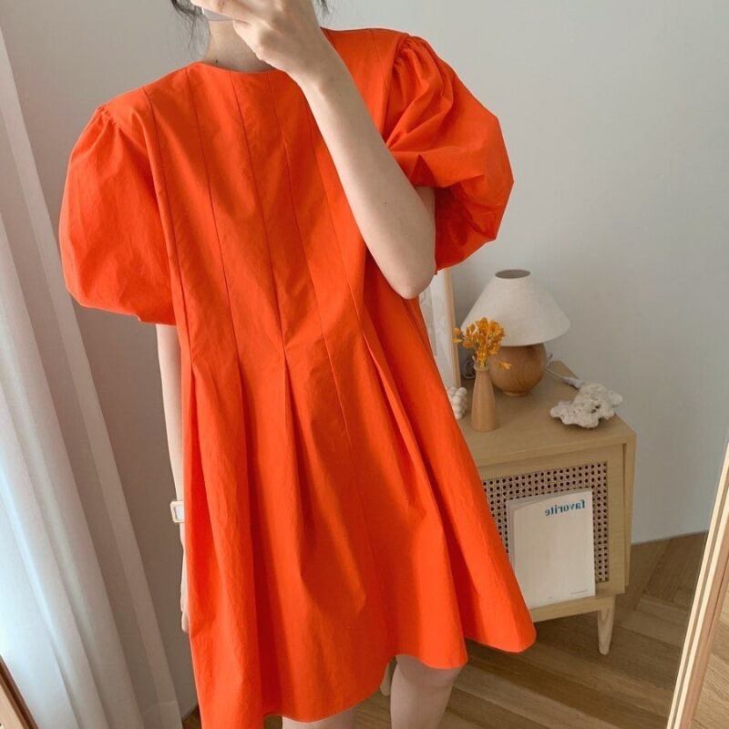 サマードレス スリーブソリッド カラールーズ半袖スカート ショート ハーフスリーブ 夏物 ソリッドカラー ICC_レディース3525676
