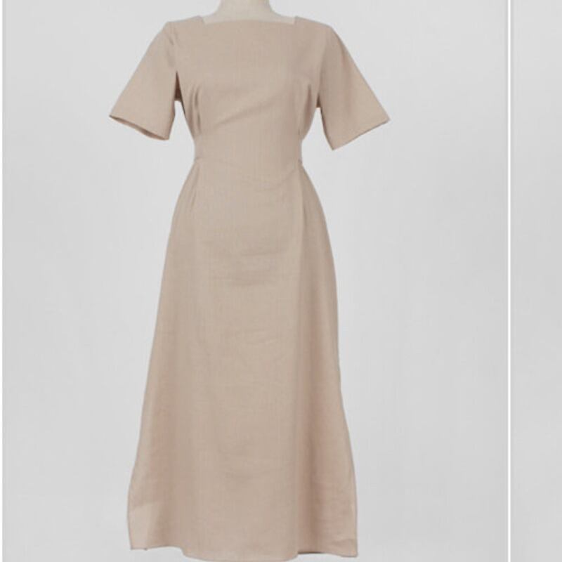 サマースタンダードカラーウェストドレス レトロ 夏物 パープル スクウェア ICC_レディース4855734