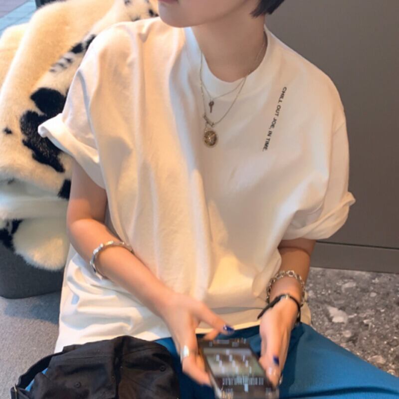 スタイルストライププリント柄ルーズ半袖スリーブTシャツ ショート ハーフスリーブ ICC_レディース6914111