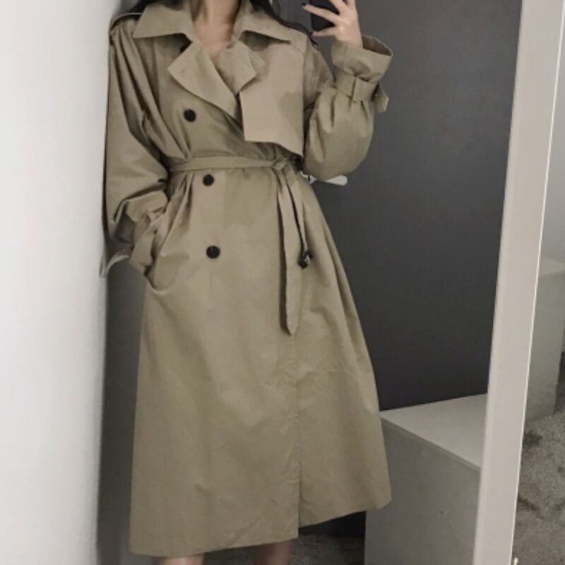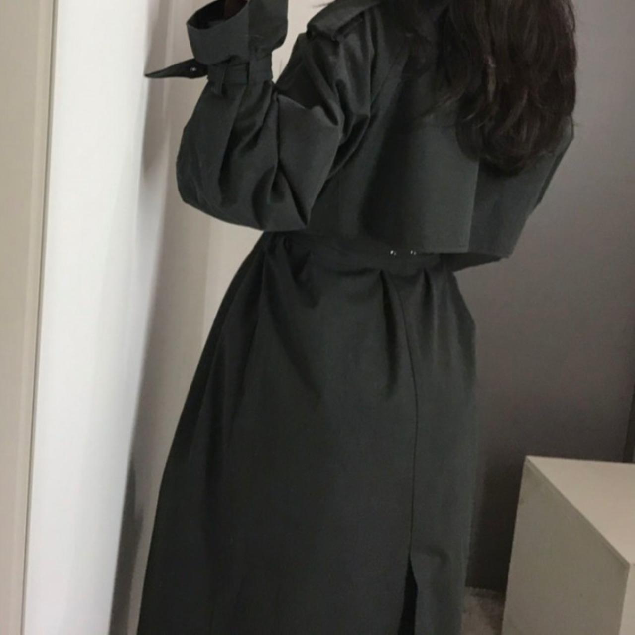 カラーダブルブレストウェストロングコート レース エレガント レースアップ ICC_レディース9341747