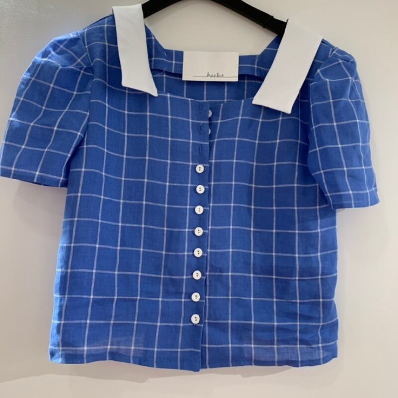 色:格子縞のシャツ,白いスカート