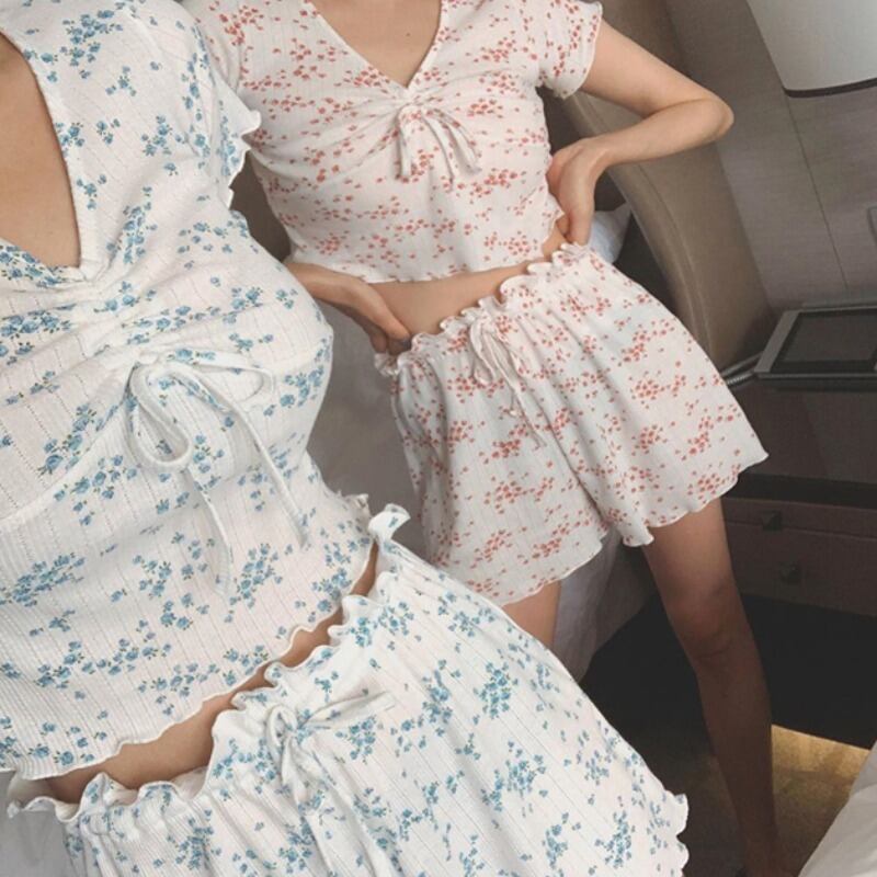 フローラルショートレディースサマーショーツ 半袖スリーブ薄手 コットン ハーフスリーブ 夏物 ブルマー 花柄 ICC_レディース4486330