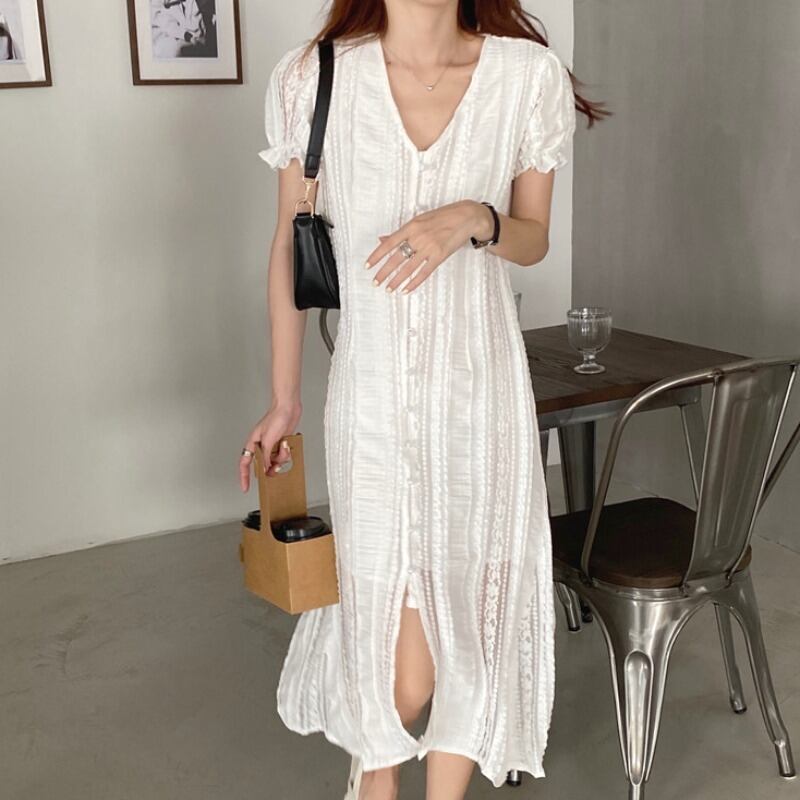サマーレッドレースVネックドレス 薄手ロングスカート 夏物 ICC_レディース8837549