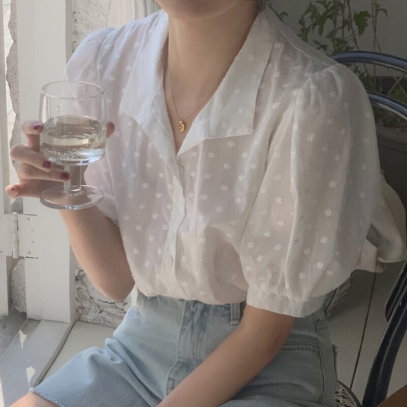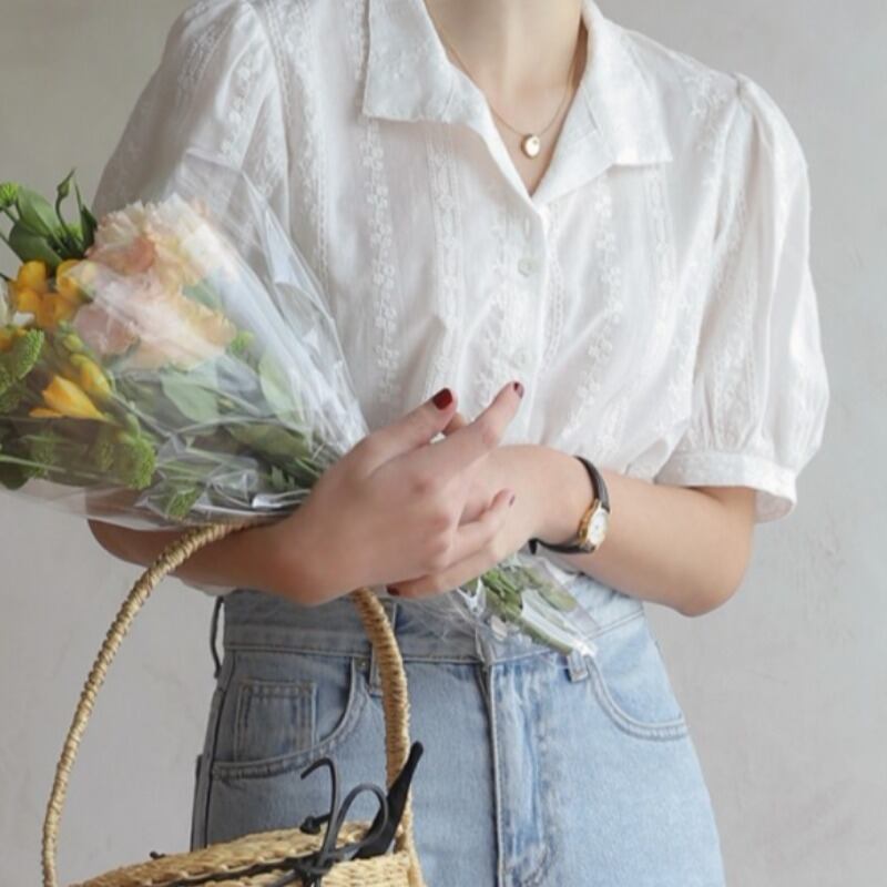 トップス サマーレース刺繍シャツ スリーブホワイト 夏物 ICC_レディース1251162