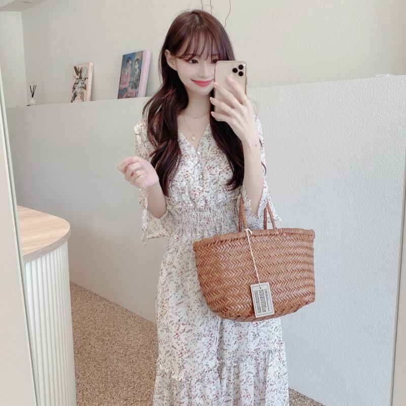 サマーフローラルロングスカート シフォン薄手ドレス 夏物 花柄 ICC_レディース8074699