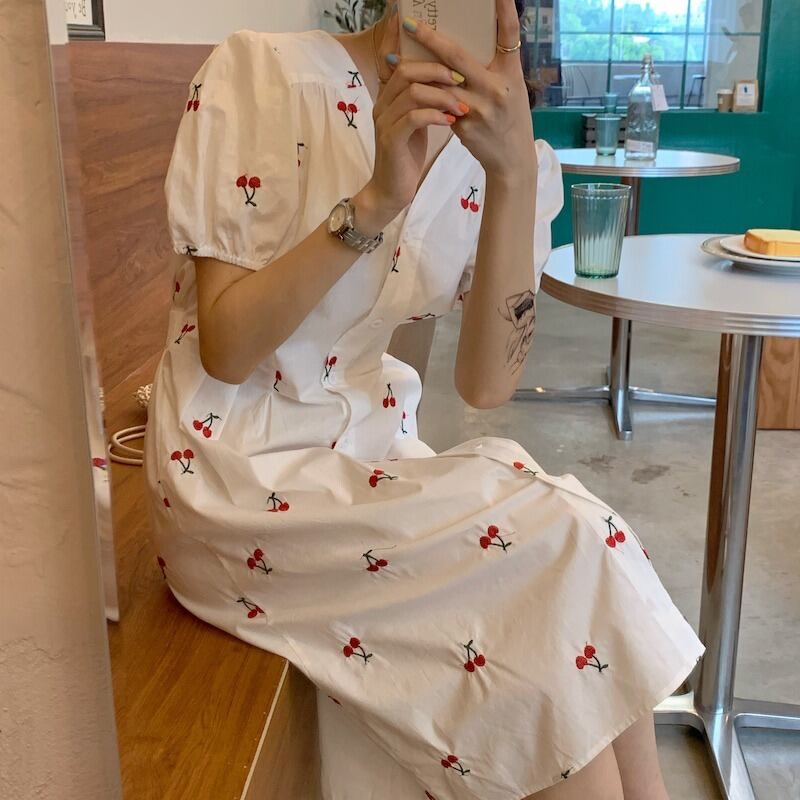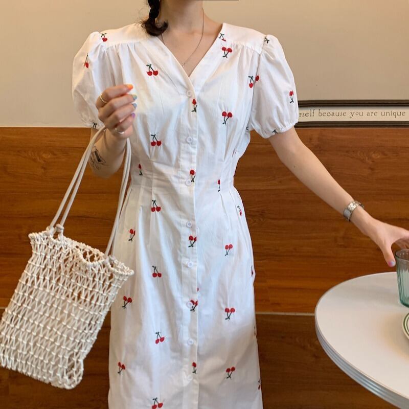 サマー刺繍スリムドレス スカート レッド 夏物 ICC_レディース8643177