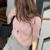 サマーカラーシャツ セーター レディース ピンク 夏物 ICC_レディース4194906