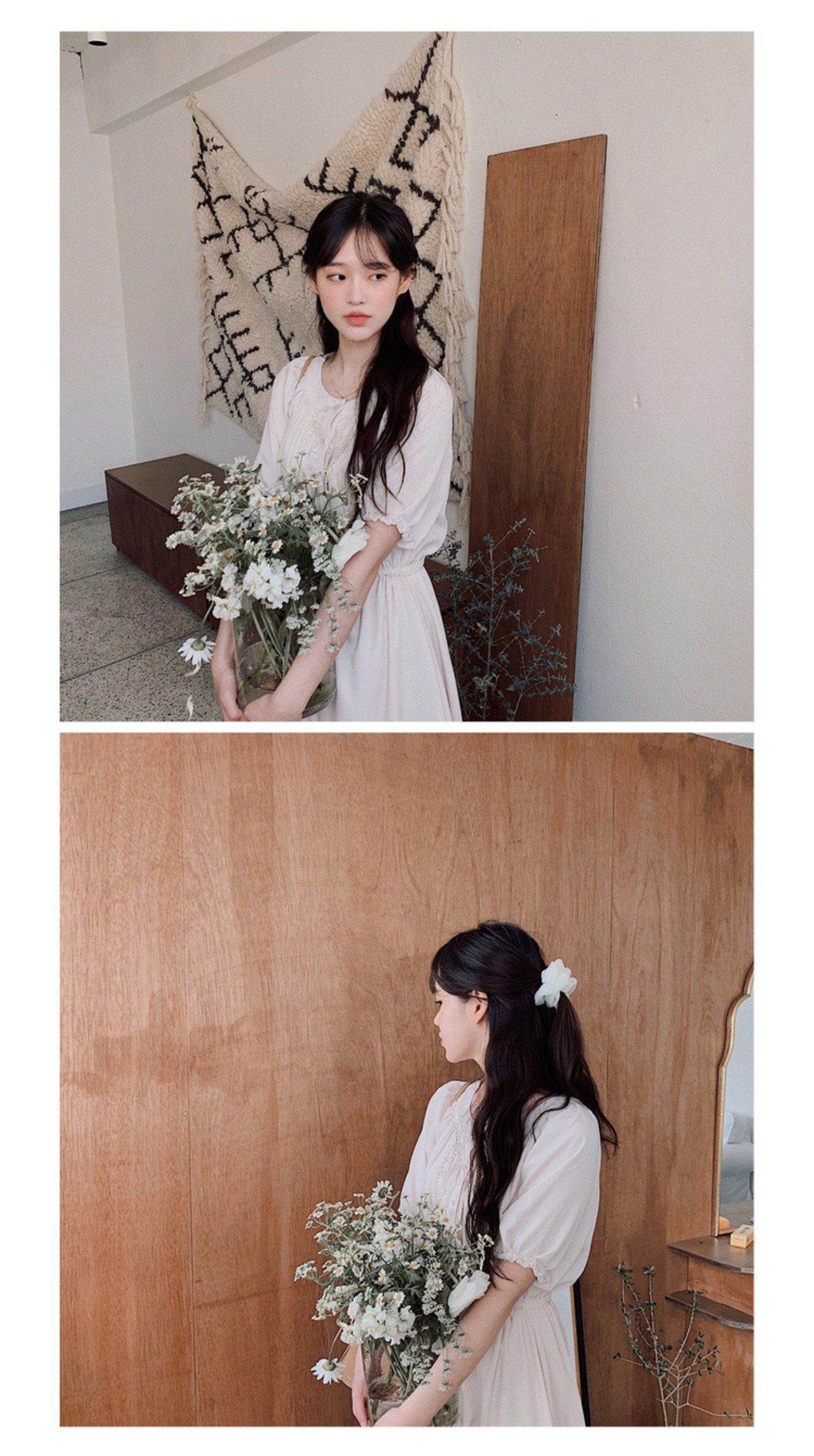 スタンダードスカート ウェストロング薄手ニットドレス レトロ フラワーデザイン 左左右右8886420