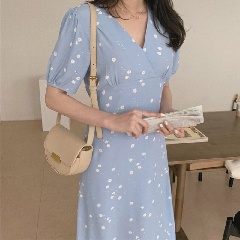 サマースタンダードスカート ロングシフォンフローラルドレス レトロ 夏物 花柄 フラワーデザイン 左左右右3498250