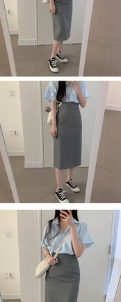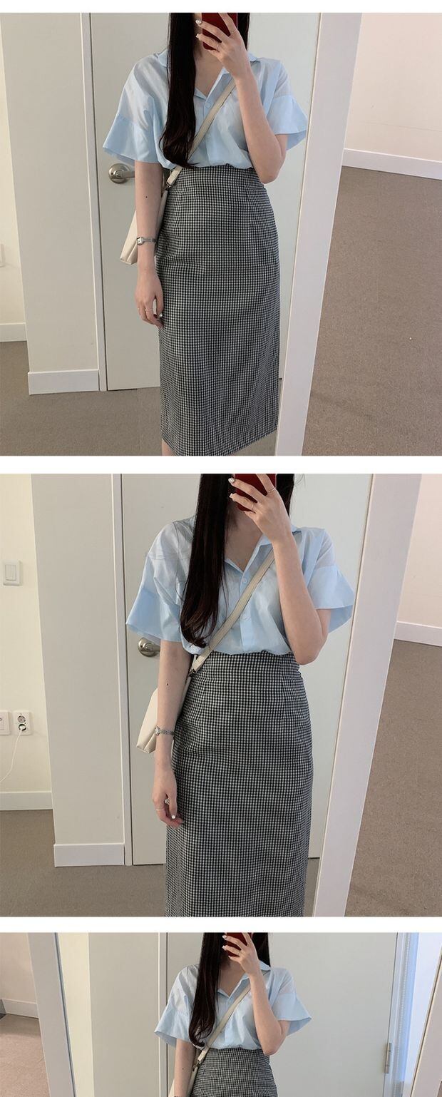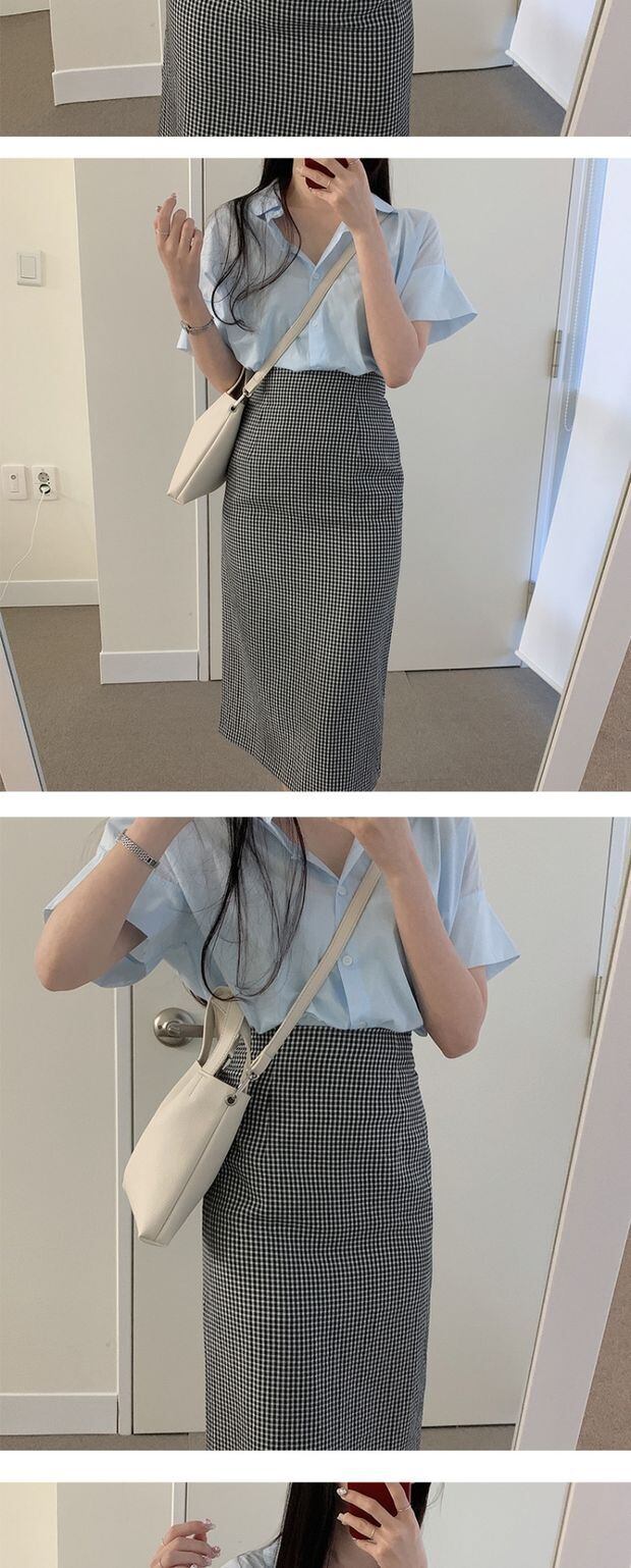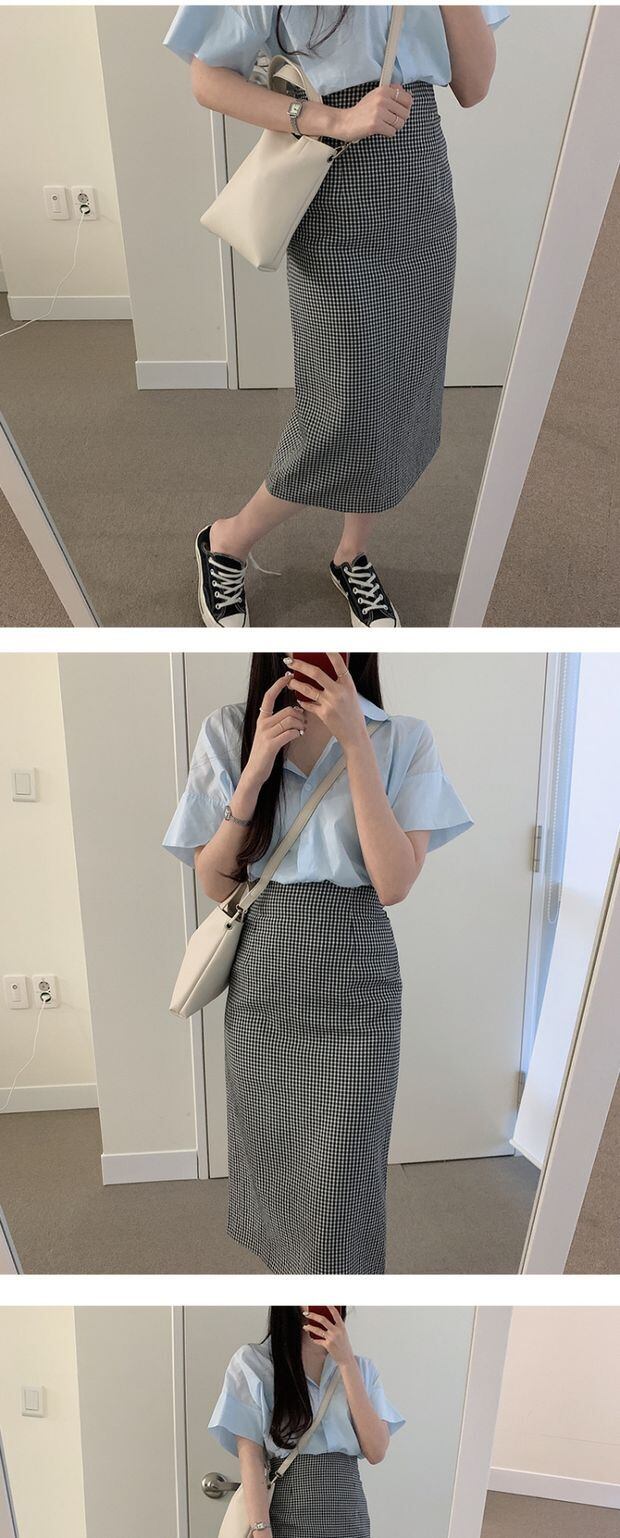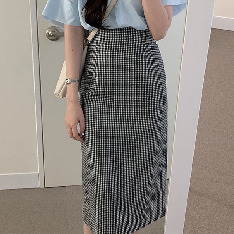 サマースタイルスタンダードスリムハイウェストウェストスカート 格子柄薄手 レトロ 夏物 左左右右0342538