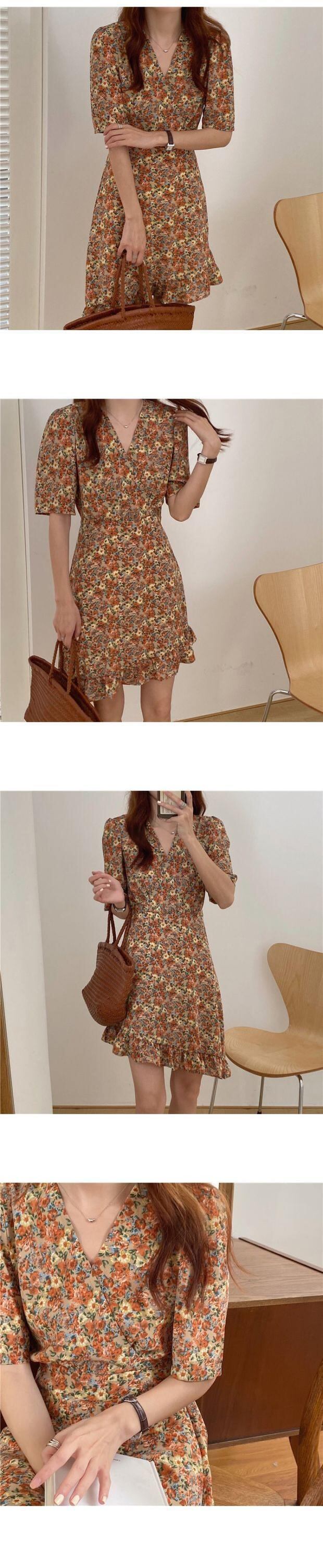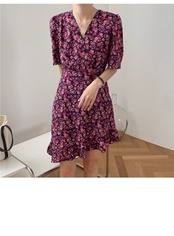 スタンダードスカート ウェスト薄手フローラルシフォンドレス レトロ 花柄 フラワーデザイン 左左右右9654194