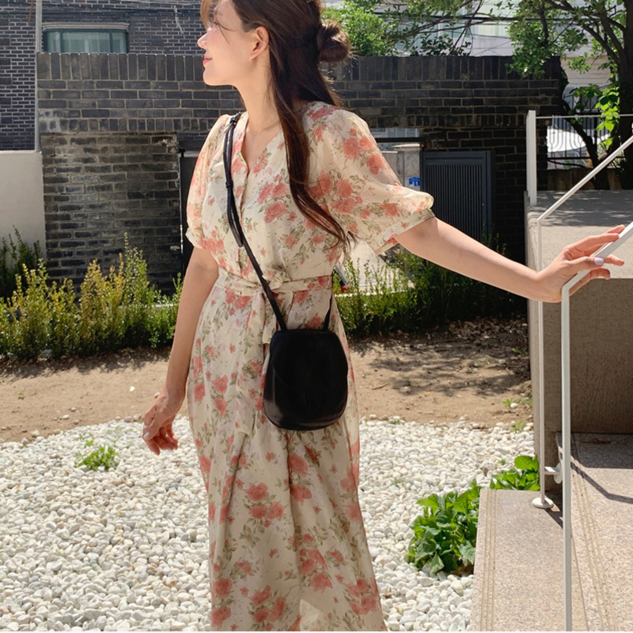 サマースタンダードスカート フローラルシフォンドレス レトロ 大人ガーリー スウィート キュート カジュアル 夏物 花柄 左左右右8785492