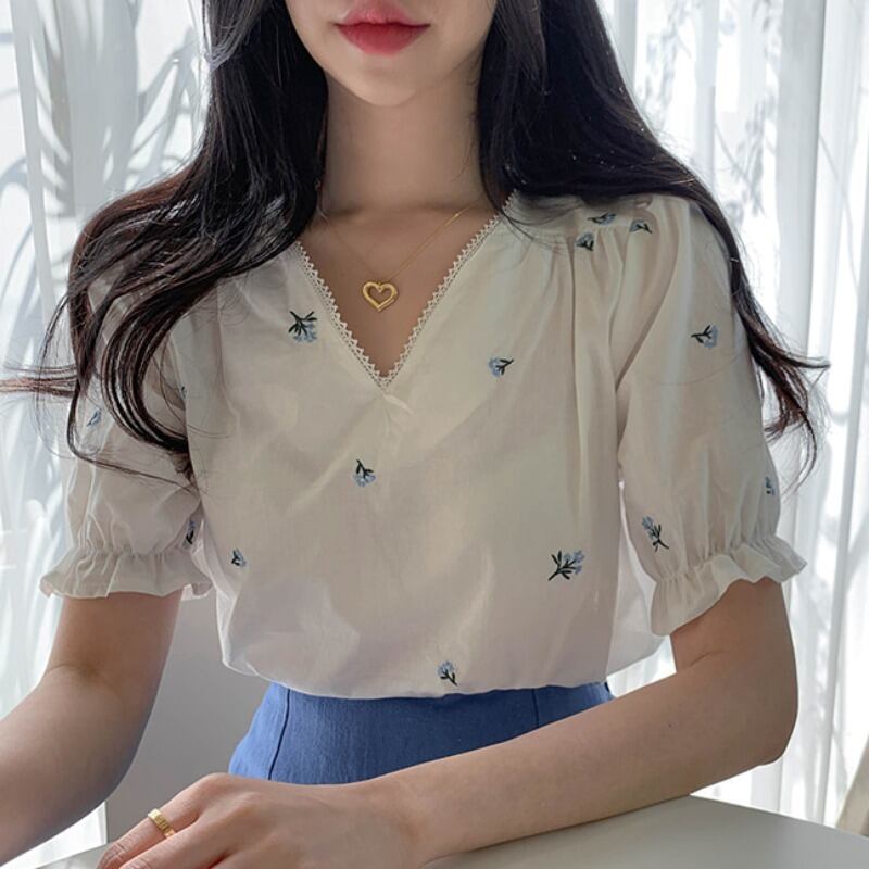 レーススリーブシャツ サマーVネックトップス 夏物 ICC_レディース5919751