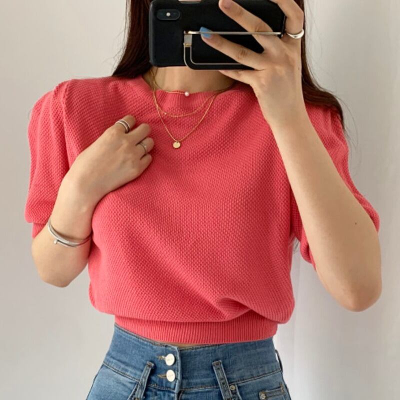 サマーベーシックラウンドネックフードカジュアルルーズスリーブセーター Tシャツ 夏物 Oネック ICC_レディース3745956