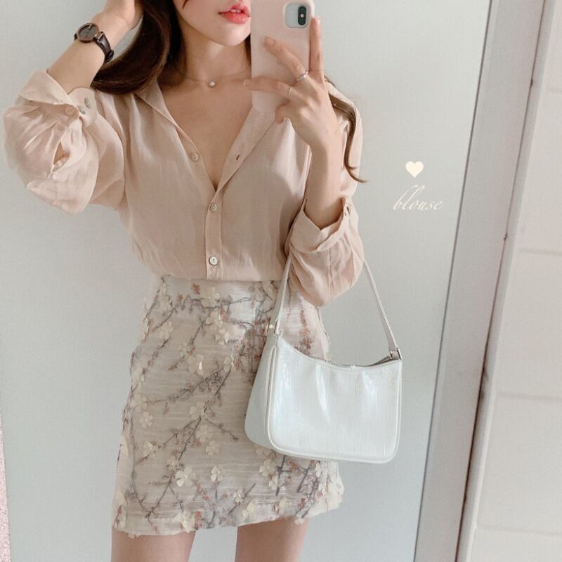 薄手シャツ ハイウェストウェストFlowerデザイン スカート ショート ロング フラワーデザイン ICC_レディース8378385