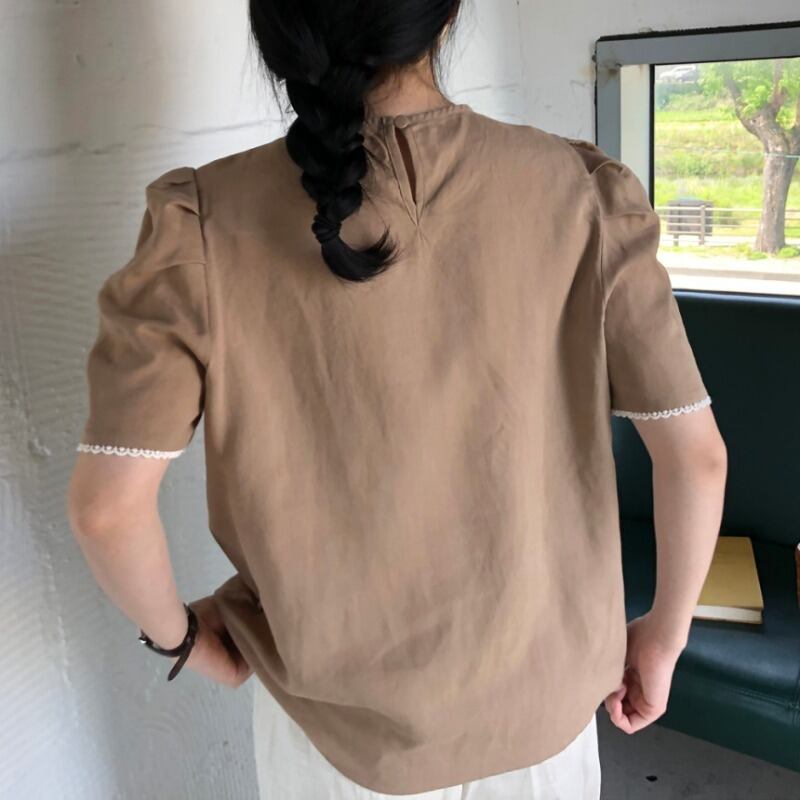 スタンダードラウンドネックレースFlowerデザイン ルーズカジュアル半袖スリーブシャツ レディース ショート レトロ ハーフスリーブ Oネック フラワーデザイン ステッチ ICC_レディース2228770