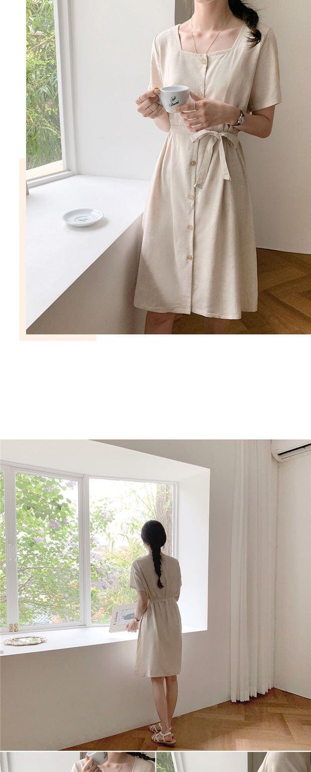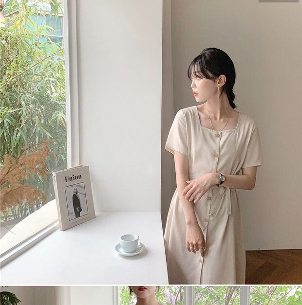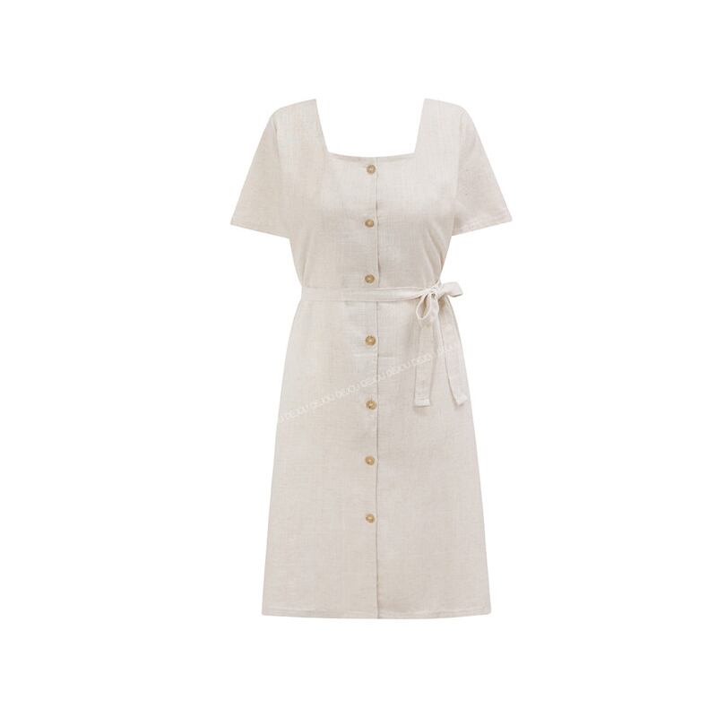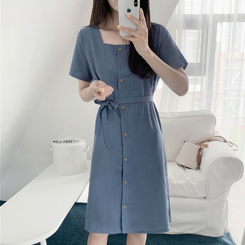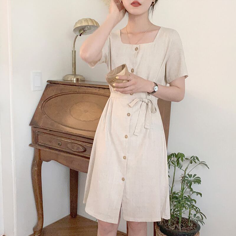 サマースタンダードスカート カラーウェストドレス 薄手 レトロ 夏物 フラワーデザイン スクウェア 左左右右0502375