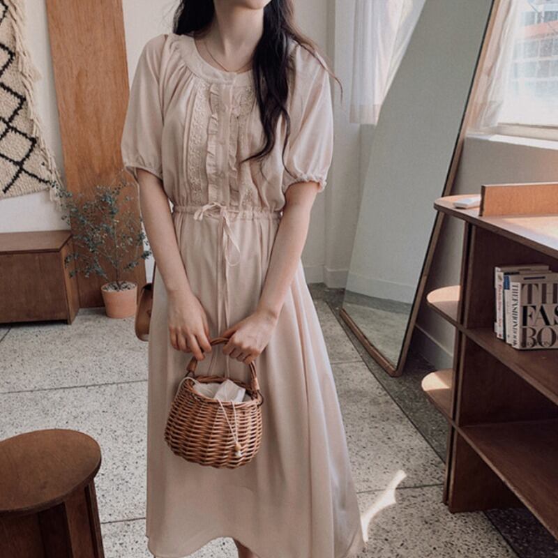 スタンダードスカート ドレス ウェストサマー レトロ 夏物 ICC_レディース6219662