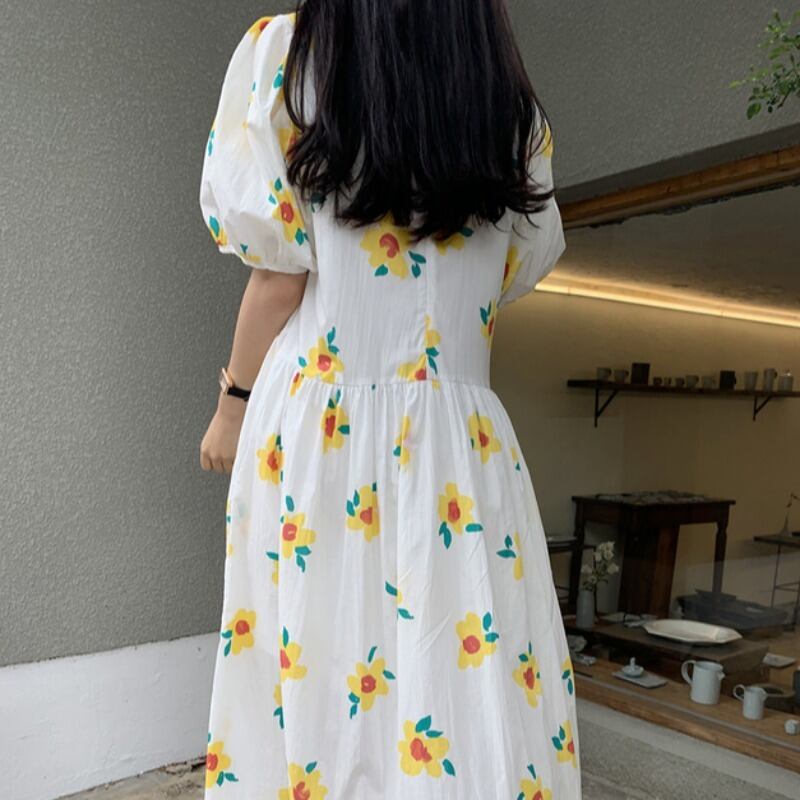 スタイル薄手Vネックルーズプリーツハイウェストウェストスリーブフローラルドレス 花柄 ICC_レディース6177251