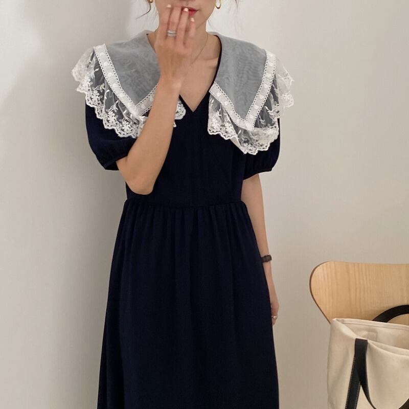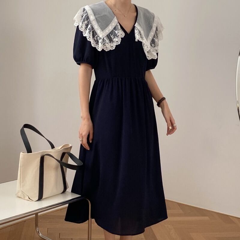 スタンダードスリム薄手ウェストルーズドレス ロングスカート レトロ エレガント ステッチ ICC_レディース2052465