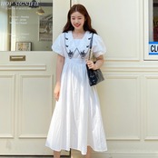 刺繍薄手ハイウェストウェストルーズドレス ロングスカート ステッチ ICC_レディース2163821