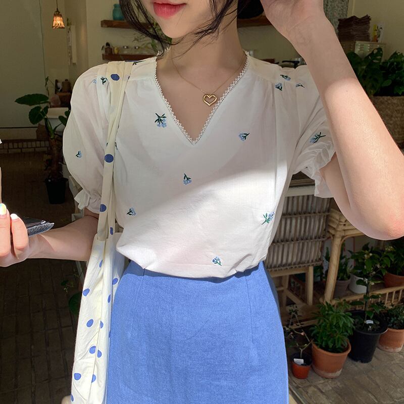サマージャケット シャツ Vネック レッド 刺繍 大人ガーリー スウィート キュート カジュアル 夏物 左左右右5120683