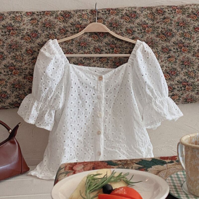 レースカラーシャツ レッド 刺繍 スクウェア ICC_レディース0388907