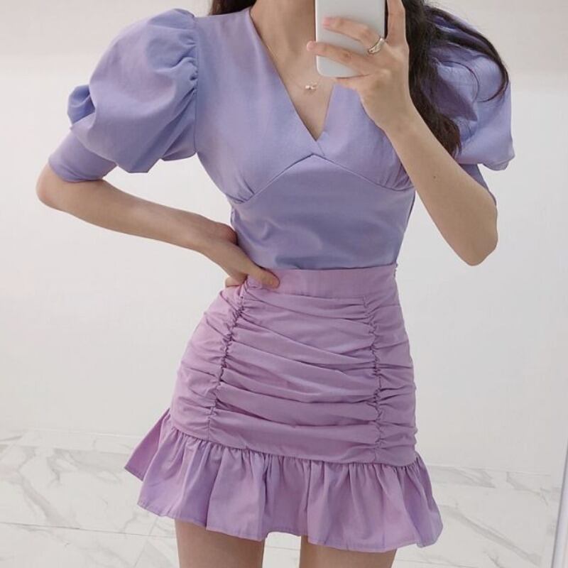 色:白のシャツ,パープルトップ,ブラックトップ,ホワイトスカートSサイズ,ホワイトスカートMサイズ,紫と白のスカート小サイズ,紫と白のスカートMサイズ,黒と白のスカート小サイズ,黒と白のスカートミディアムサイズ