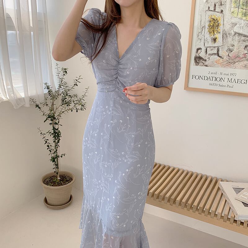 サマースタンダードスカート スリムフローラルドレス レトロ 夏物 花柄 フラワーデザイン 左左右右6598050