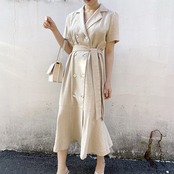 サマースタンダードレースウェストスカート カラードレス レトロ 夏物 レースアップ フラワーデザイン 左左右右1379573