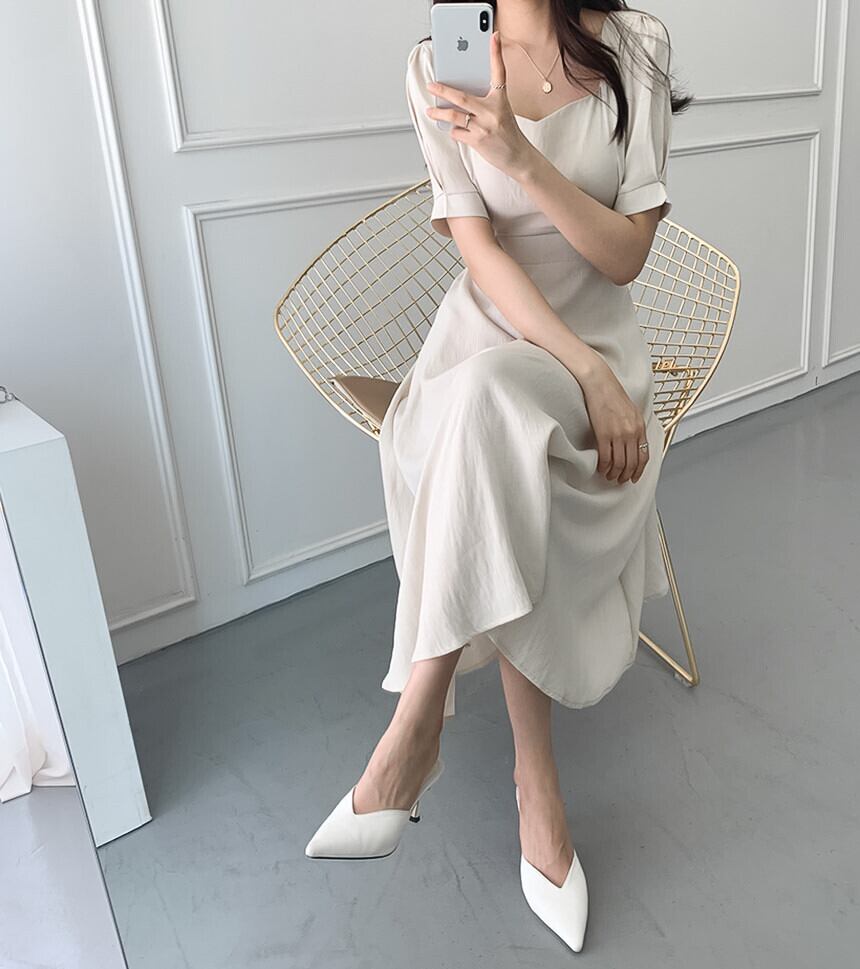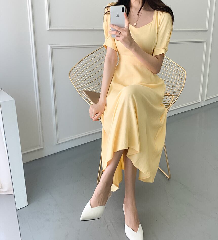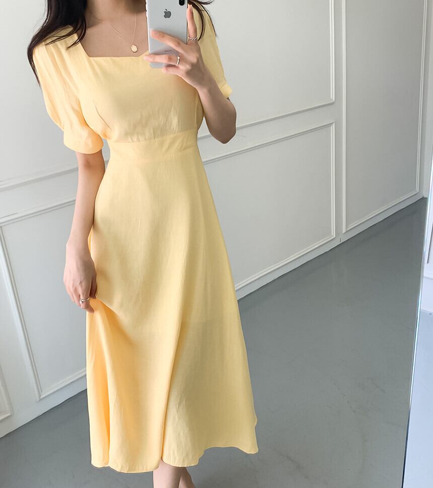 サマースタンダードスカート ロングウェストドレス レトロ 夏物 フラワーデザイン 左左右右2330478