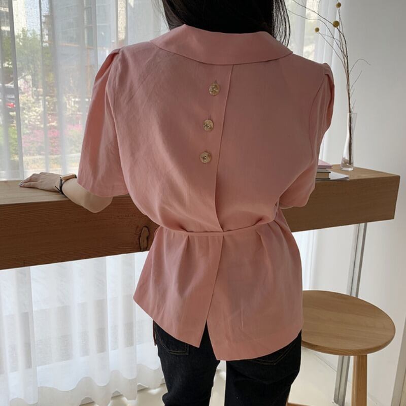カラーバックボタンレース半袖スリーブシャツ ショート ハーフスリーブ ICC_レディース9231687