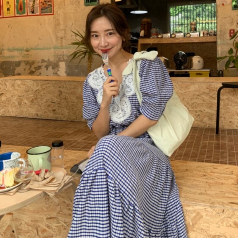 レースルーズウェスト格子柄ドレス 大人ガーリー スウィート キュート カジュアル ステッチ ICC_レディース5330337