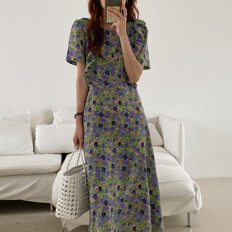 フローラルスリム薄手スタイルスカート 半袖スリーブドレス ショート ハーフスリーブ 花柄 ICC_レディース4078361